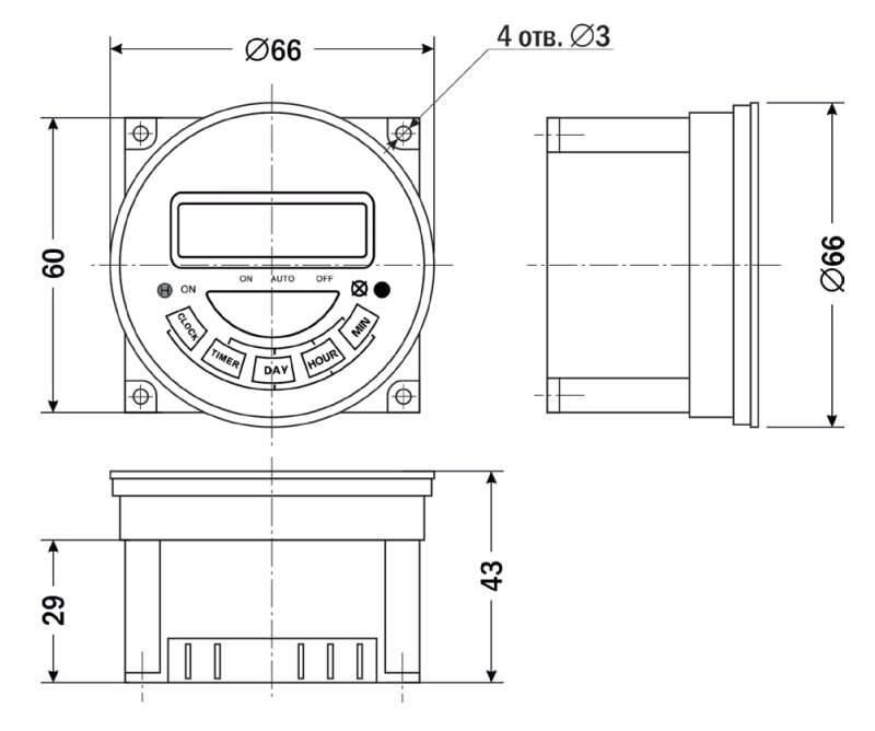 - Возможность ручного переключения контактов реле кнопкой на лицевой панели
